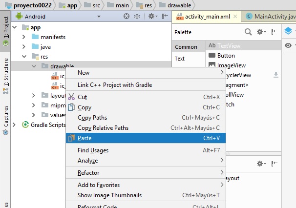 derecho del ratón y buscamos la opción paste (pegar), que pasara