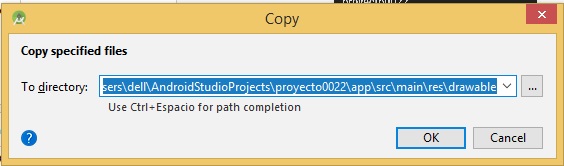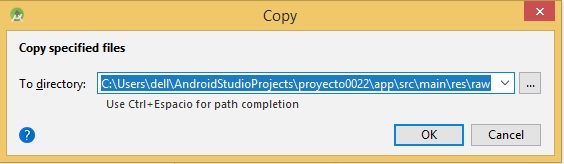 la ruta de los archivos de audio copiados anteriormente