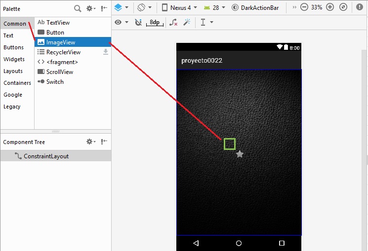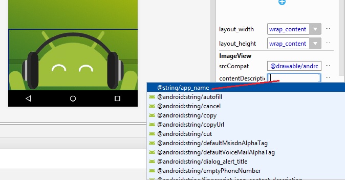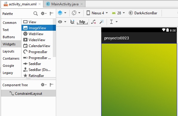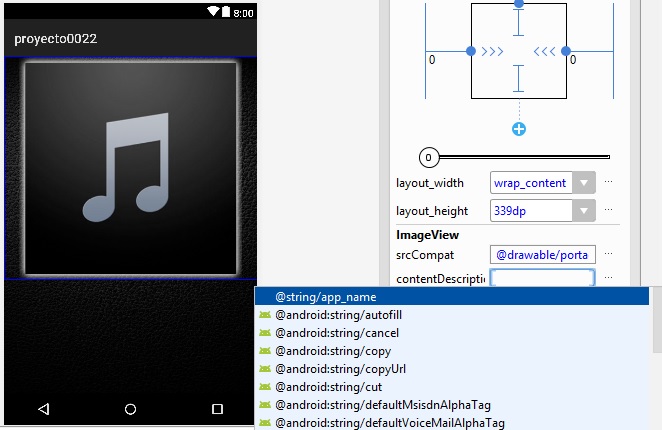 establecemos layout_width a 128dp, y layout_height a 128dp, y al