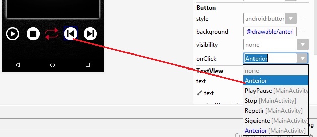 de acción de los botones, el archivo de audio debe de tener como