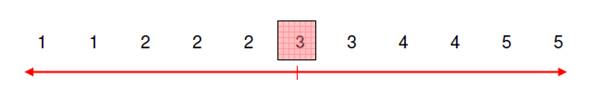 Modifiquemos el ejemplo anterior, eliminando el último dato. Encontrar la mediana: