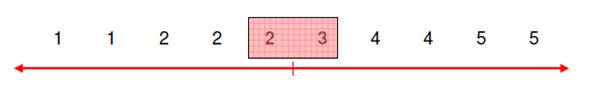 El punto medio se encuentra entre dos valores: 2 y 3, por tanto, el valor de la mediana será 2,5.