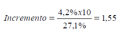Con una regla de tres sencilla hallaremos el incremento en unidades dada en la clase para ese 4,2%.