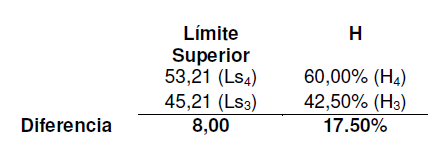 Entre los dos límites superiores abarcan un total de 17,50% de los datos. Se debe aumentar en 7,50% los datos desde límite superior del tercer intervalo de clase.
