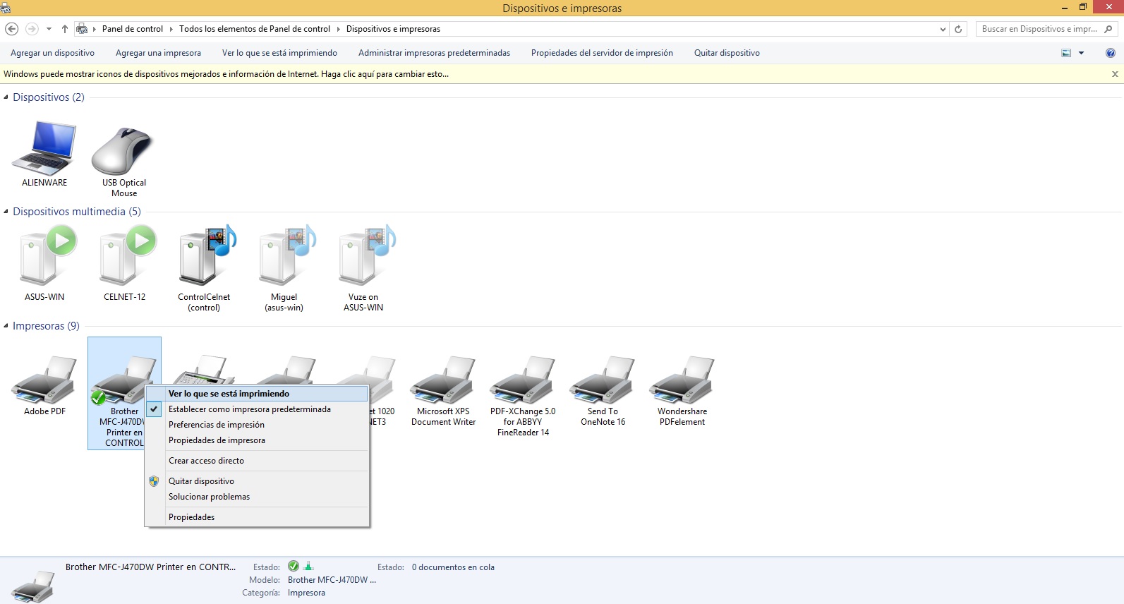 impresora predeterminada de su menú contextual. Sólo puede haber