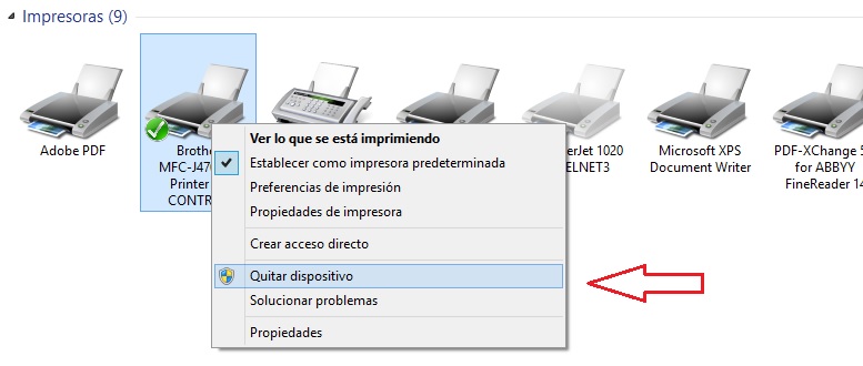 seleccionándola y pulsando sobre la opción Quitar dispositivo.