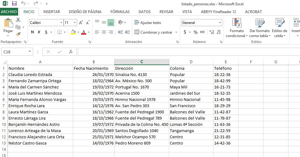 Colonia y Domicilio guarde el libro de trabajo con el nombre de