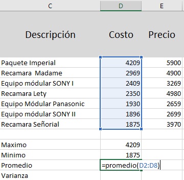 cuenta que nuestro cursor deberá estar en una de la celdas donde