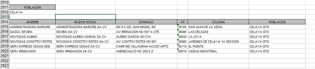 automática el listado en su totalidad, si estuviera fuera del