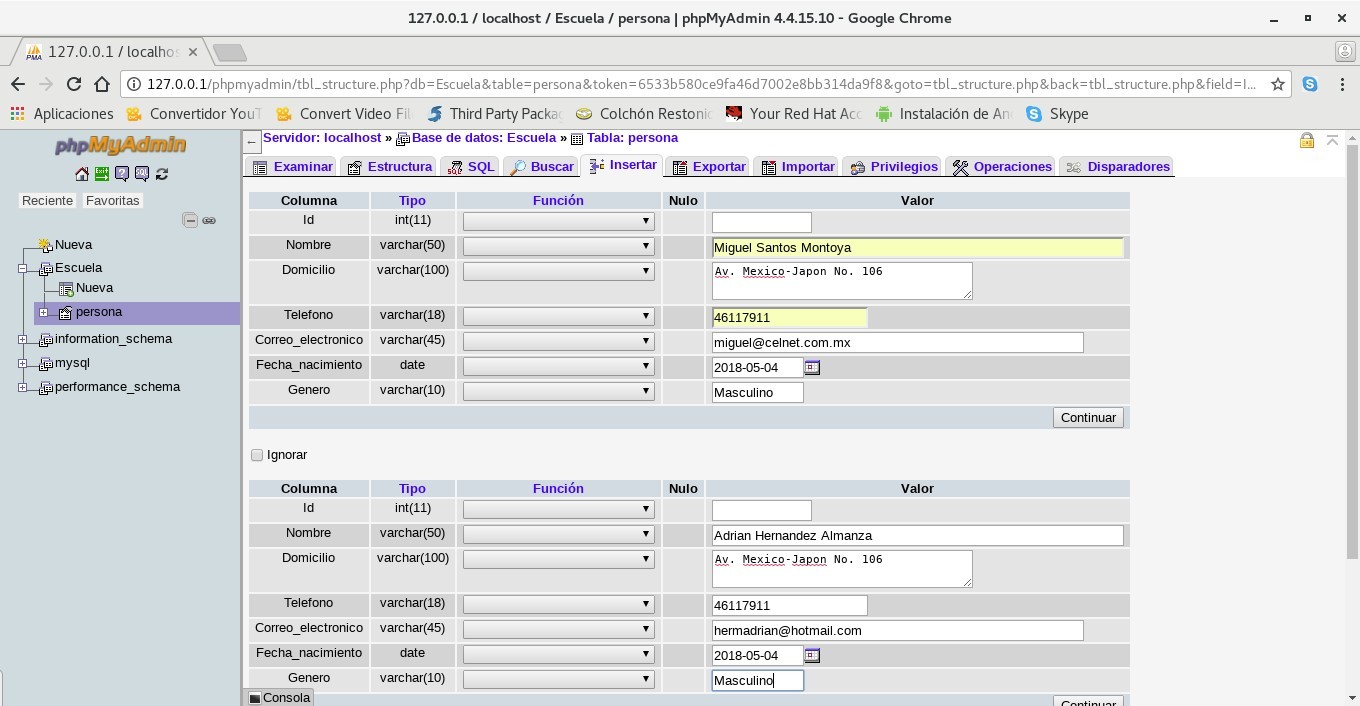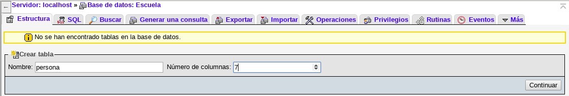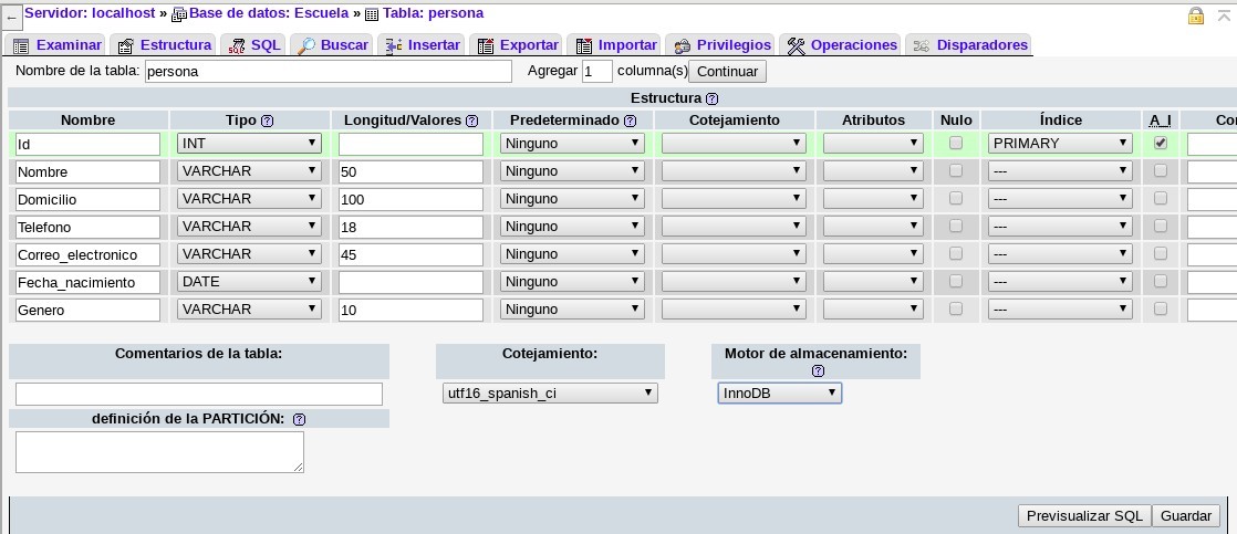 anteriormente, la base de datos llamada Escuela, y agregaremos un