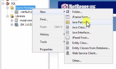 Se crea un paquete en Source package ... hacer un clic botón derecho y seleccionar New -> Java Package ...
