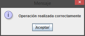 JOptionPane.showMessageDialog(null,"Operacion realizada correctamente")