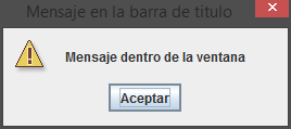 "Mensaje en la barra de titulo", JOptionPane.WARNING_MESSAGE);