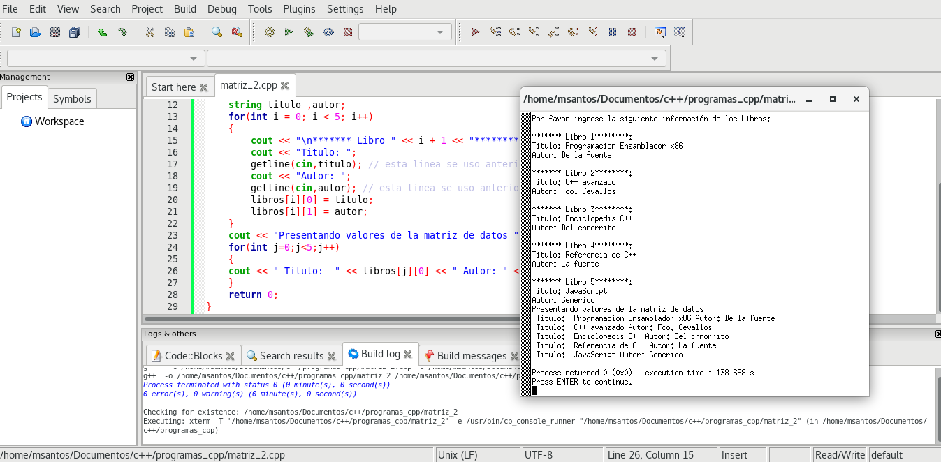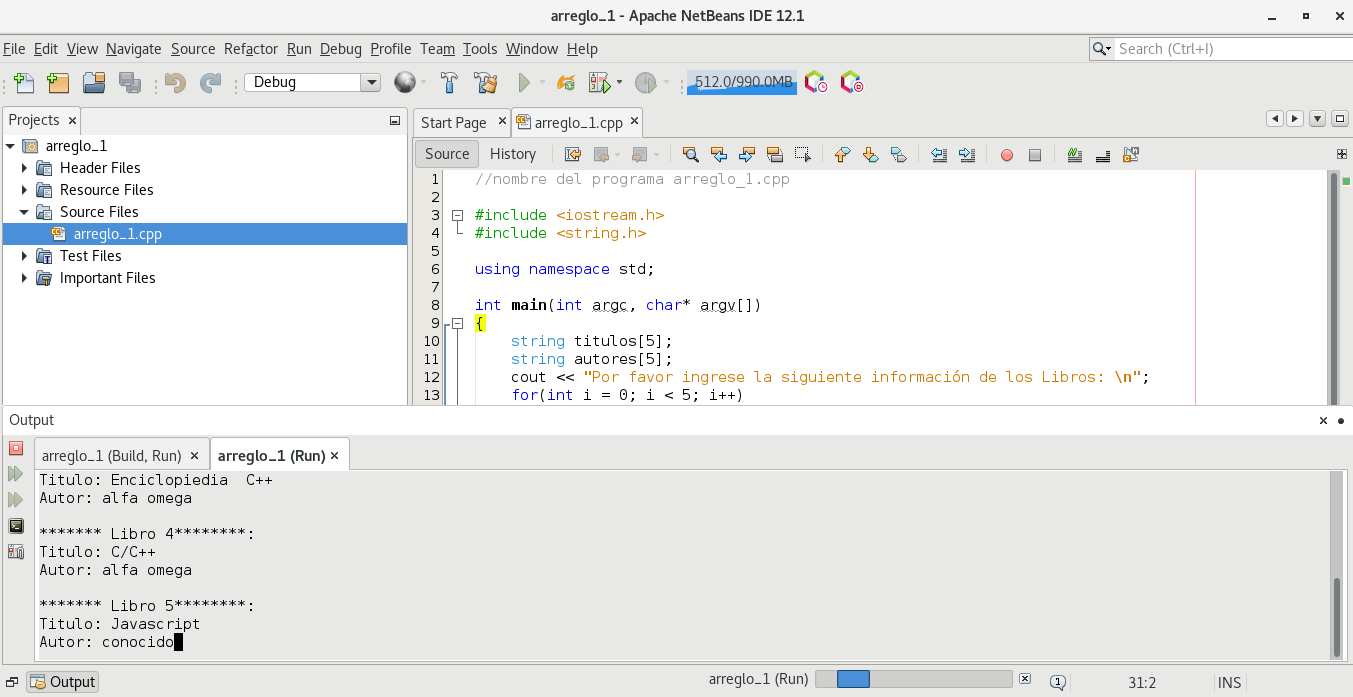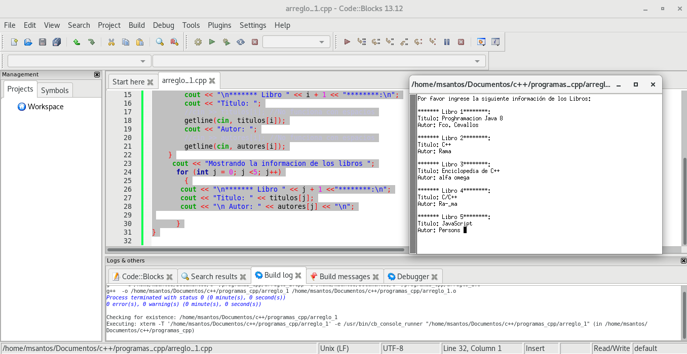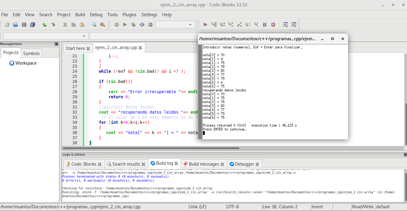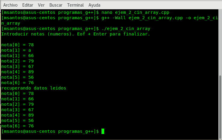 Ejemplo de Arrays o Vectores en C++