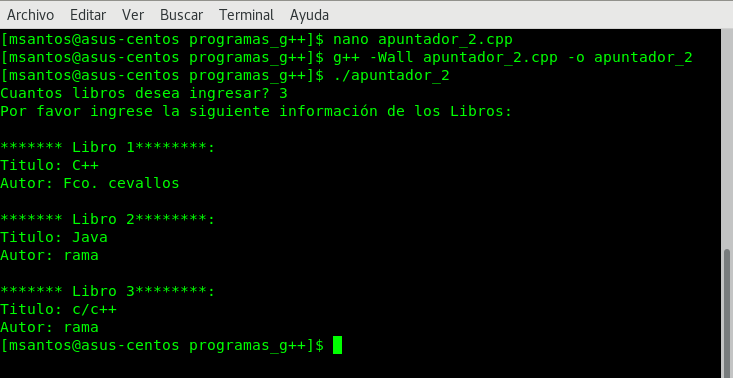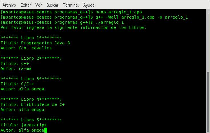 que el usuario ingrese, pero en cuanto desee ingresar otro libro