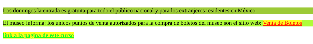 (HTML) de lo que es su estilo, color, tamaño, decoraciones varias